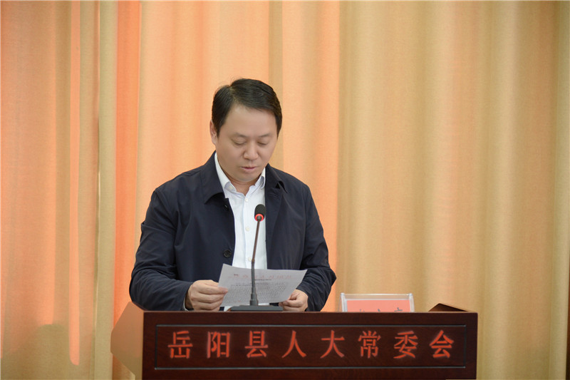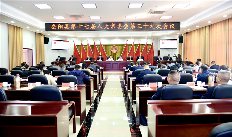 岳阳县融媒体中心10月13日讯(记者 袁颖 钟斯洋)10月12日,县十七届人大常委会第39次会议召开。县人大常委会主任汤小娥,副主任胡海平、易治国、许吉程、陈晓军、吴承棉出席。县委副书记、代县长吴光文,县委常委、纪委书记、监委代理主任姚书茂,县委常委、常务副县长童勋海及县法检两院主要负责人列席会议。