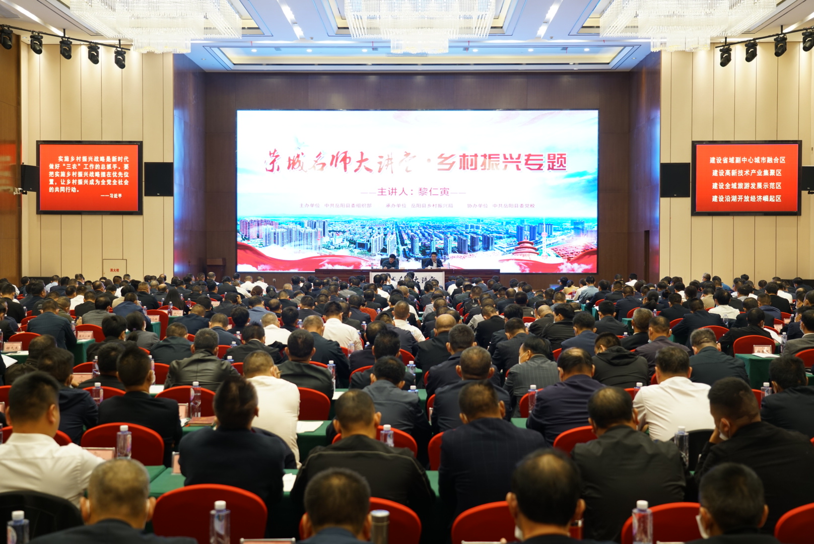 岳阳县融媒体中心10月14日讯(记者 熊佳 秦淑云)10月13日,县委书记肖湘晖主持“荣城名师大讲堂·乡村振兴”专题培训,省乡村振兴局党组成员、副局长、一级巡视员黎仁寅应邀为大家授课。肖湘晖强调,要进一步统一思想,凝聚共识,切实增强工作责任感和紧迫感,积极做好巩固拓展脱贫攻坚成果同乡村振兴有效衔接工作,走出一条具有岳阳县特色的乡村振兴之路。