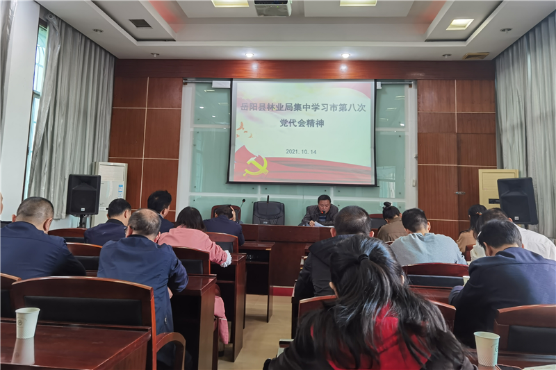 岳阳县融媒体中心10月15日讯(通讯员 兰海泉)10月14日,县林业局组织机关全体党员集中学习市第八次党代会精神。会议要求,要迅速把思想行动统一到党代会精神上来,切实把党代会精神转化为推进“三区一中心”和“四区”建设的思想自觉和行动自觉;要结合党史学习教育,将宣传贯彻市党代会精神作为当前和今后一个时期的重要政治任务,充分利用“三会一课”、党支部会议等多个途径开展学习宣传;要结合工作实际,切实把责任和使命体现到担当作为上来,扛牢重点工作责任,为不断开创岳阳县高质量跨越发展新局面贡献林业力量。