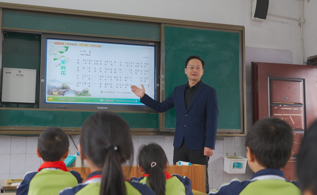“好一朵美丽的茉莉花,好一朵美丽的茉莉花,芬芳美丽满枝桠,又香又白人人夸。”课堂上传来阵阵领唱歌声的人正是人大代表易果。