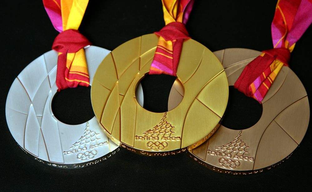 都灵冬奥会奖牌采用圆形中空设计,中间的空缺代表着意大利广场。与以往不同的是,奖牌挂带没有固定在奖牌顶部。奖牌正面是冬奥会的图形元素,背面是获奖运动员从事运动的象形图。