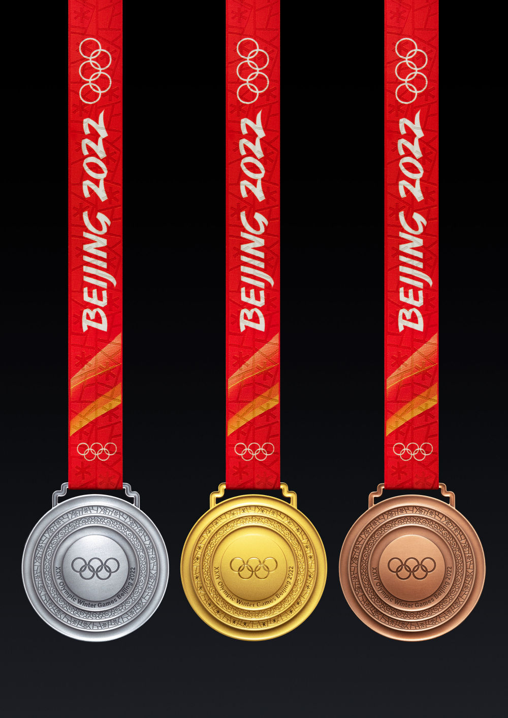 北京冬奥会奖牌,由圆环加圆心构成牌体,形象来源于中国古代同心圆玉璧,共设五环。五环同心,同心归圆,表达了“天地合·人心同”的中华文化内涵,也象征着奥林匹克精神将世界人民聚集在一起,共享冬奥荣光。奖牌造型质朴简洁,体现了北京冬奥会“简约、安全、精彩”的办赛要求,并与北京2008年奥运会奖牌“金镶玉”相呼应,展现了“双奥之城”的文化传承。
