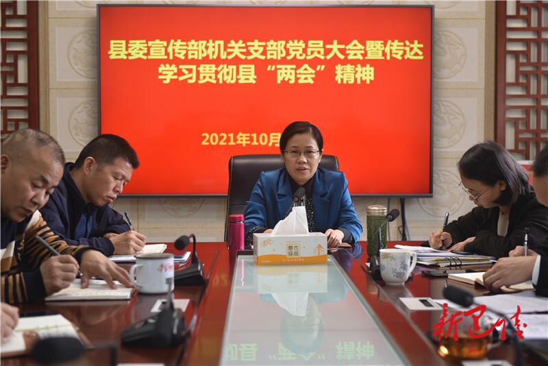 何喜要求,要提高站位,认真学习好县“两会”精神;要营造氛围,全力宣传好“两会”精神,结合市、县党代会精神,加强舆论引导,策划专题专栏,创新形式方式,做好正面宣传;要履职尽责,切实贯彻好县“两会”精神,找准定位,结合职责,重点抓好全国文明城市创建、文化强县建设、落实意识形态工作责任制等相关工作,确保会议精神落实、落地、落细。