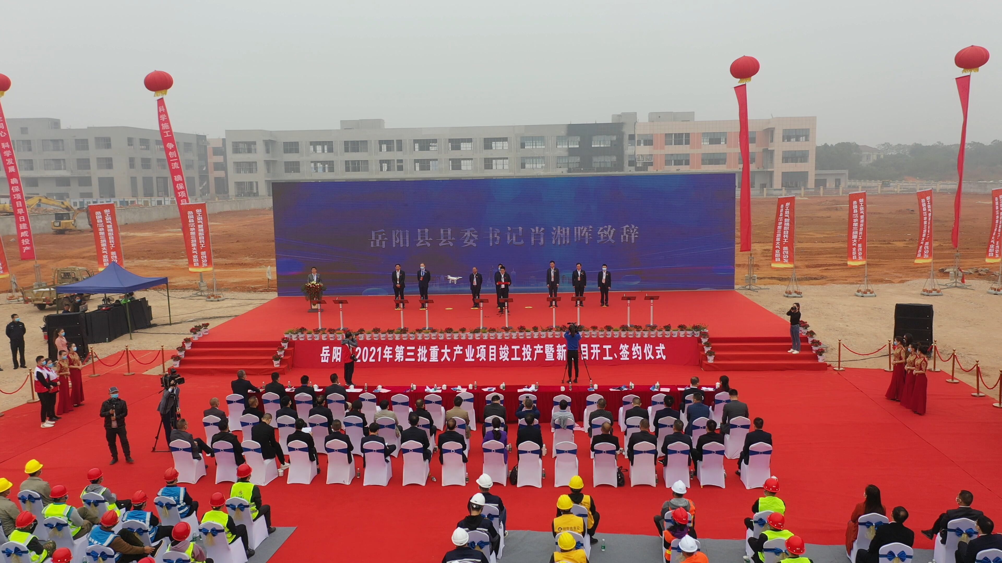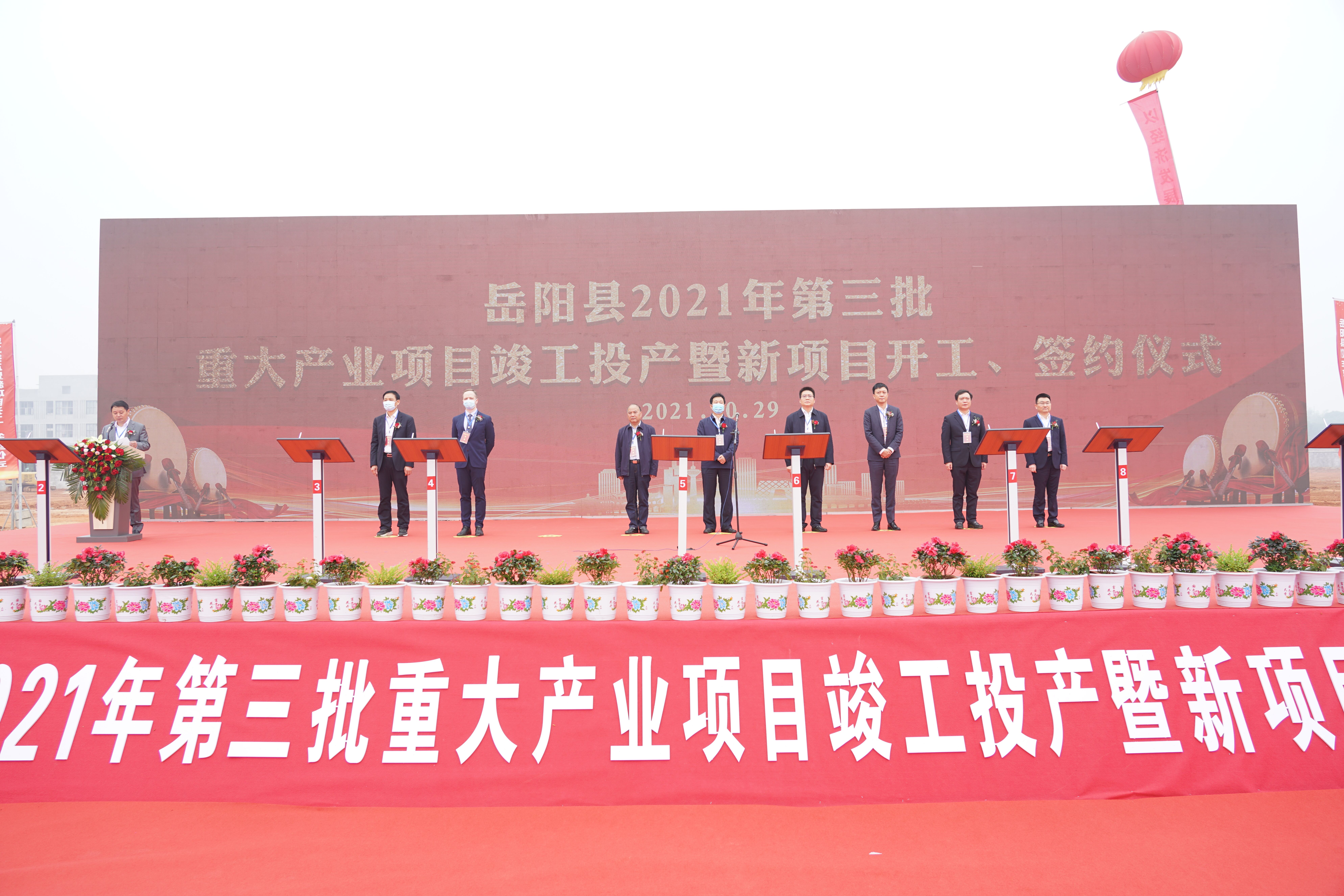 岳阳县融媒体中心10月29日讯(记者 熊佳 秦淑云)10月29日,我县举行2021年第三批重大产业项目竣工投产暨新项目开工签约仪式。市委副书记、政法委书记李挚出席,县委书记肖湘晖出席并致辞,县委副书记、县长吴光文主持仪式,县领导姜其胜、周峰、周里、王靖、童勋海、张文毅、李樱、余望新及集中竣工投产暨新开工、新签约项目业主方代表等出席开工仪式。