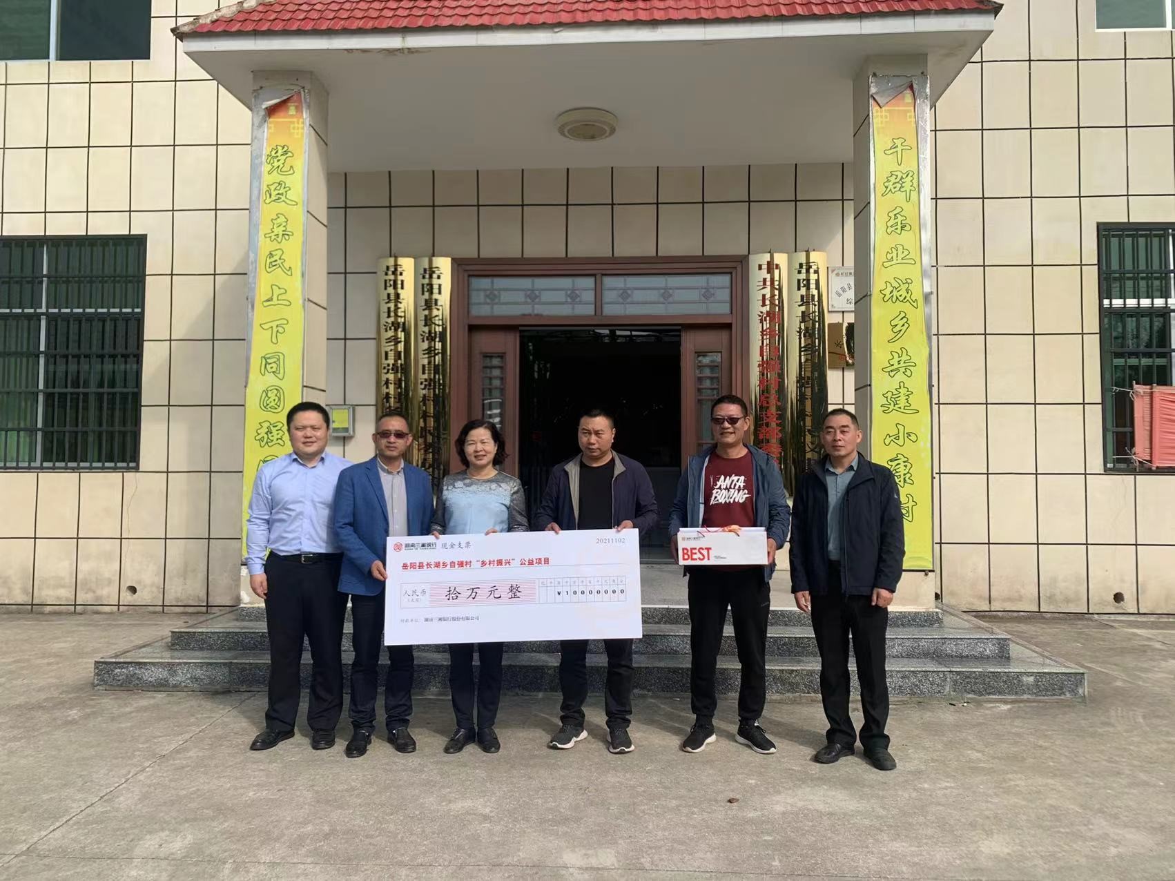 自强村是长湖乡唯一一个县级贫困村,于2017年脱贫摘帽,正在大力推进乡村振兴。长湖乡党委副书记刘亮衷心感谢湖南三湘银行的支持,他表示,这一善举彰显了企业的社会责任与担当,自强村今后会更加努力把家园建设好,用行动回报湖南三湘银行的关爱。