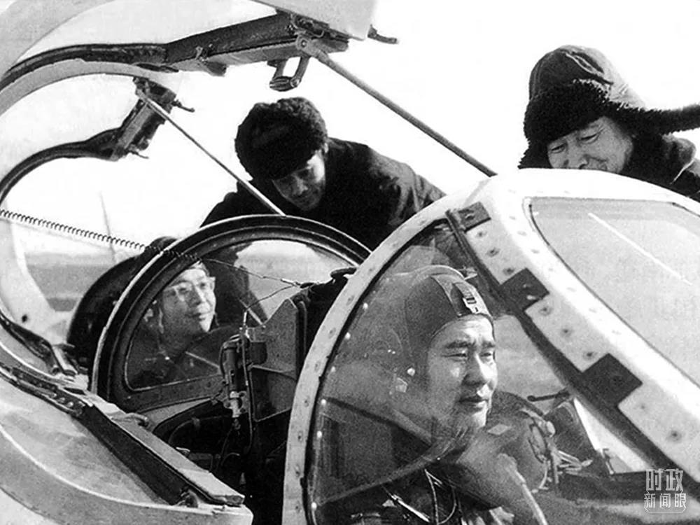 △顾诵芬(后座)乘战斗机上天,直接跟在歼8飞机后面观察振动情况。(资料图)