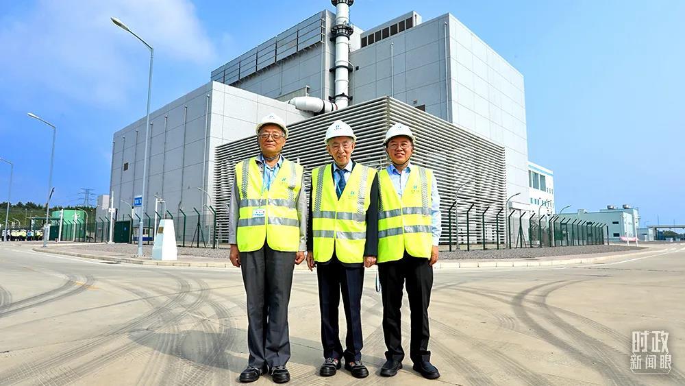 △2021年9月12日,王大中(中)、吴宗鑫(左)、张作义(右)在山东石岛湾高温气冷堆示范工程现场。(资料图)