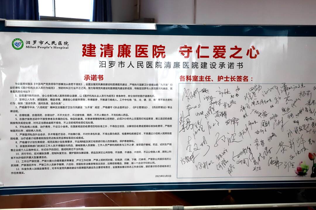 汨罗融媒体讯(记者 张为)11月3日,在汨罗市人民医院“清廉医院”建设工作推进会,再次明确遵纪守法、廉洁自律的重要性,进一步压实清廉医院建设主体责任。全院中层以上干部集体在“清廉医院”建设承诺书上签名。