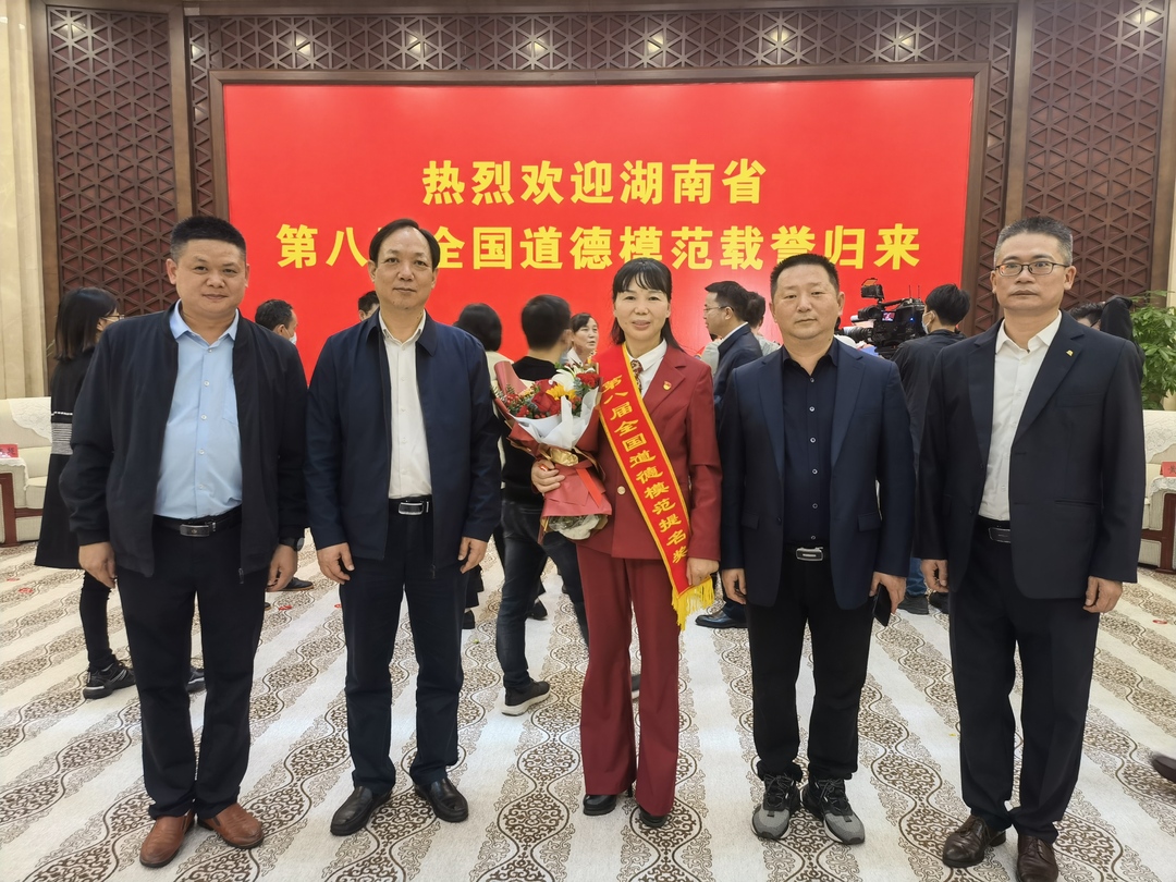 汨罗融媒体讯(记者 夏凡 胡清)"热烈欢迎湖南省第八届全国道德模范载誉归来!"11月6日下午,参加完第八届全国道德模范表彰活动的湖南省第八届全国道德模范及提名奖获得者代表从北京回到湖南长沙,刚下高铁,就受到副省长谢卫江一行的热情迎接。