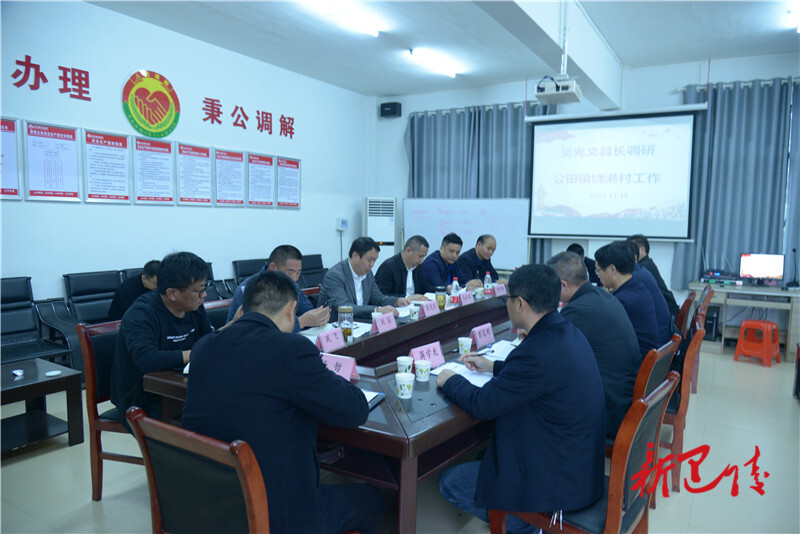 吴光文一行首先到公田镇水系连通工程生态景观坝察看,紧接着前往饶港村察看熊山水库安全饮水工程进展情况和瓜蒌产业发展情况。随后,吴光文主持召开座谈会,听取村情汇报。