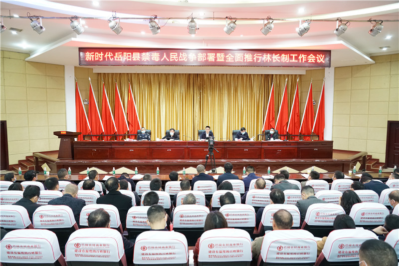 岳阳县融媒体中心11月23日讯(记者 秦淑云 熊佳)11月22日,我县召开新时代岳阳县禁毒人民战争部署暨全面推行林长制工作会议,深入贯彻中央、省、市关于禁毒工作和林长制会议精神,安排部署全县禁毒工作和全面推行林长制工作。县委书记肖湘晖出席会议并讲话,县委副书记、县长吴光文主持会议,县领导姜其胜、胡海平、陈遇春,全县各乡镇、县直及驻县各单位负责人参加会议。各乡镇(办事处)设分会场。