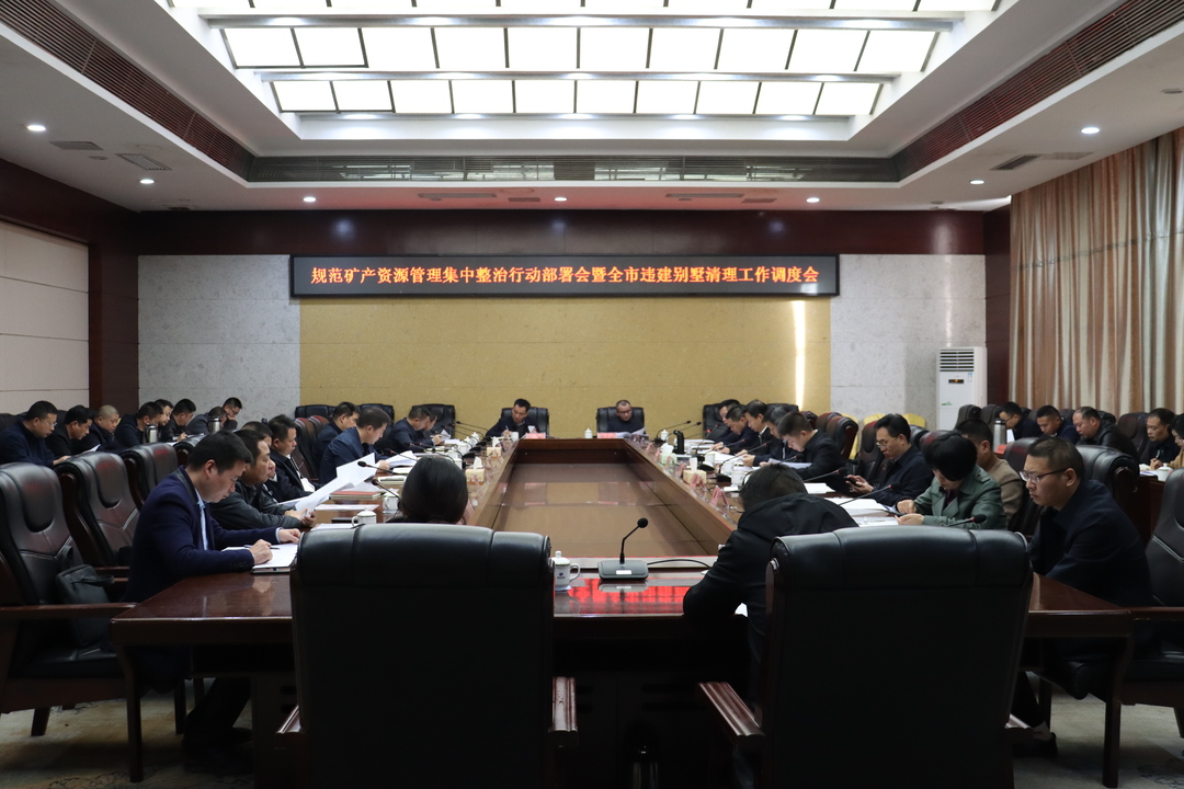 会议组织学习《规范矿产资源集中整治行动实施方案》和《进一步深化巩固全市违建别墅问题清查整治专项行动工作方案》;通报全市矿产资源相关情况及下步规范矿产资源集中整治行动内容和全市违建别墅清理工作内容;相关部门及各镇负责人表态发言。
