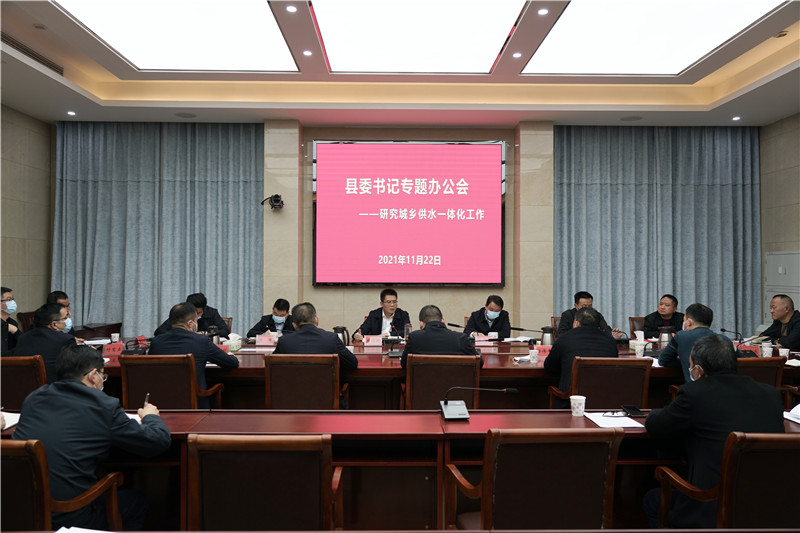 岳阳县融媒体中心11月26日讯(记者 秦淑云 熊佳)11月22日,县委书记肖湘晖主持召开专题办公会,研究城乡供水一体化工作。他强调,各部门、各单位要按照县委、县政府的统一部署,立足全局、压实责任、迅速推进、务求实效,切实提高县域城乡供水能力,努力改善城乡居民用水环境。县委副书记、县长吴光文,县领导周峰、王靖、贺立、胡海平及相关单位负责人参加。