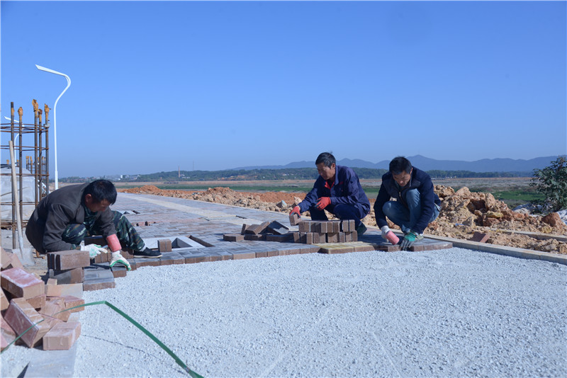 岳阳县融媒体中心11月24日讯(记者 袁颖 钟斯洋)11月24日的新墙河路(樟树潭至八仙桥段)施工现场,现场机声轰鸣,施工机械来回穿梭,施工人员正忙着对路面铺设透水砖,一派火热景象。目前,工程进展顺利,已进入收尾阶段。