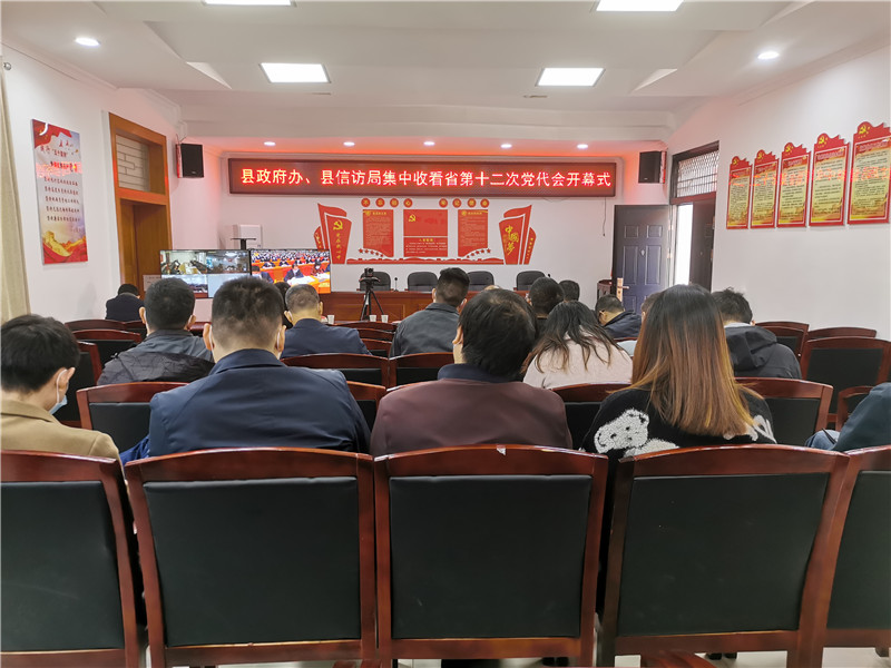县政府办、县信访局组织党员干部观看省第十二次党代会开幕式实况直播