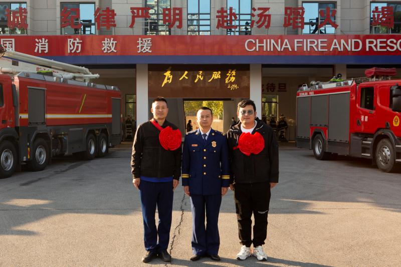 座谈会后,退出消防员和全体指战员合影留念,依依不舍和队友们一一相拥告别,在大家的祝福声中踏上了回乡的新征程。