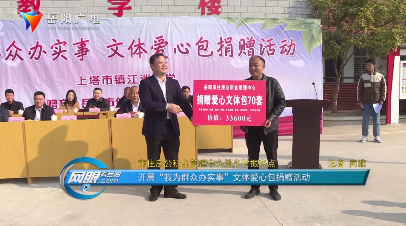 岳阳广电全媒体讯(记者 向雅)为扎实开展党史学习教育“我为群众办实事”实践活动,切实做好巩固拓展脱贫攻坚成果同乡村振兴有效衔接,12月10日,市住房公积金管理中心赴帮扶村——平江县上塔市镇黄泥湾村开展“我为群众办实事”文体爱心包捐赠活动。