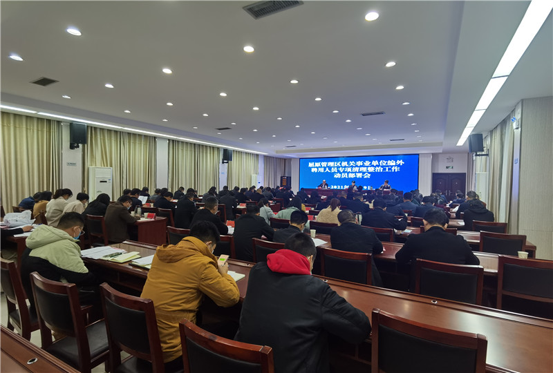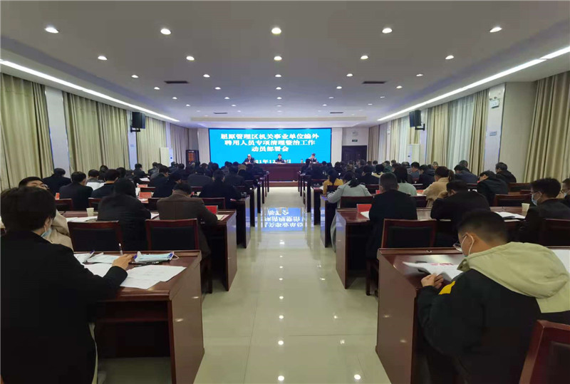 屈原融媒体讯(通讯员 姜静)为全面动员部署屈原管理区机关事业单位编外聘用人员专项清理整治工作,推进编外聘用人员制度化、规范化管理。12月9日晚,屈原区召开编外聘用人员专项清理整治工作动员部署会。屈原区党委书记向科军出席会议并讲话,屈原区党委副书记、管委会主任杨林彬主持。全体在家区级领导、各部办委局负责人、区编外人员专项清理办公室有关人员等参加会议。
