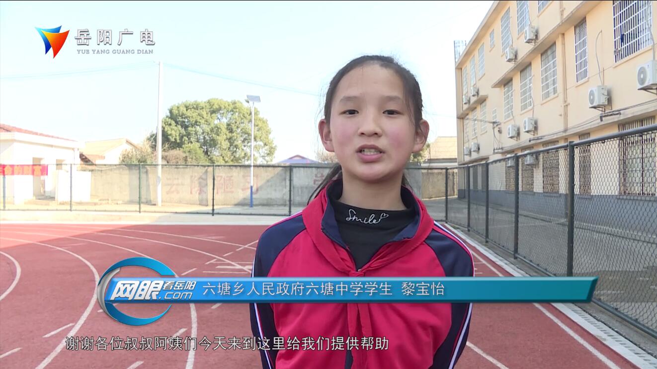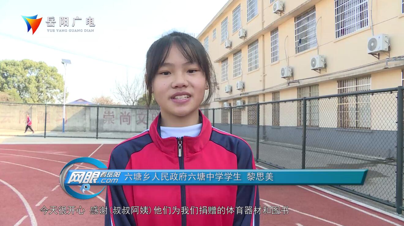 捐赠活动在六塘乡六塘中学举行,活动现场,学生代表为嘉宾们系上红领巾表达感谢,随后,岳阳市公共资源交易中心为六塘中学捐赠了70套爱心文体包与爱心书籍,中心副主任付晓斌表示,希望乡政府和六塘中学以此次捐赠活动为契机,继续想方设法改善办学条件,千方百计为同学们营造一个更好的学习环境;同时,希望学校的广大老师尽职尽责,让孩子们品尝到更加丰富的精神食粮,希望孩子们珍惜机会,勤奋学习,不负厚望,立志成才,真正成为建设美丽家乡、实现中华民族伟大复兴“中国梦”的合格建设者和可靠接班人。