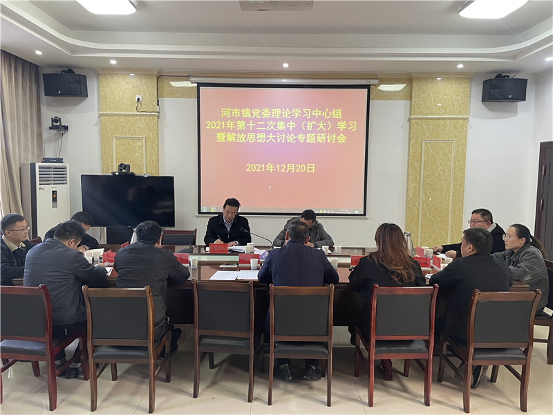 屈原融媒体讯(通讯员 河市镇)12月20日下午,屈原管理区河市镇召开镇党委理论学习中心组2021年第十二次集中(扩大)学习暨解放思想大讨论专题研讨会。全体党政班子成员、各村(社区)党总支书记、各站(所)长参加。屈原区党委副书记田明清出席并讲话。