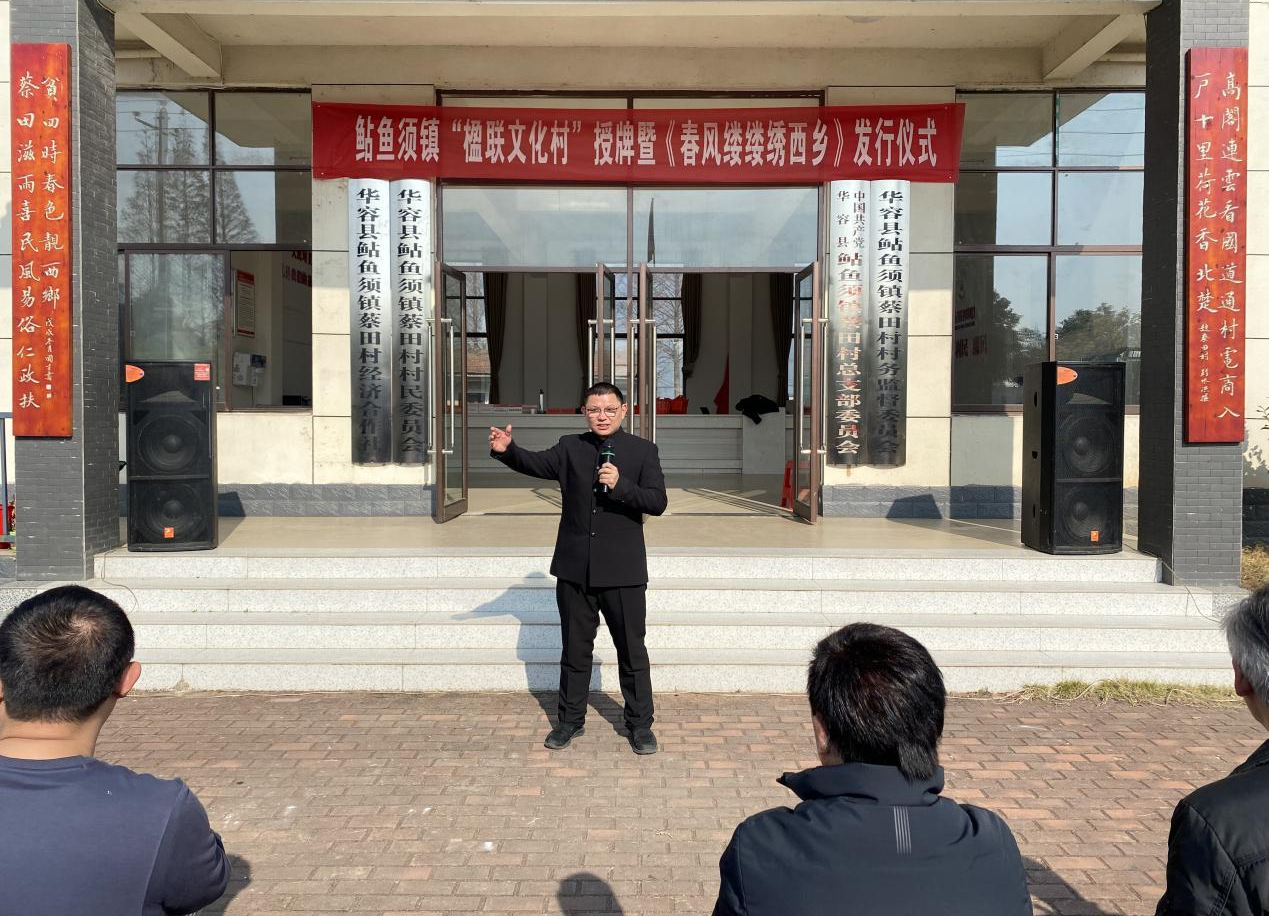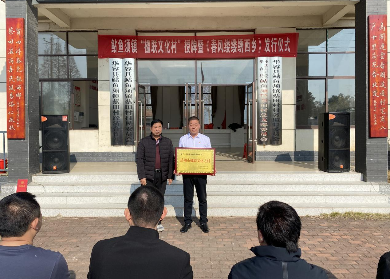 岳阳广电全媒体讯(记者/蔡群 通讯员/许琼)12月22日,“岳阳市楹联文化之村”授牌暨《春风缕缕绣西乡》发行仪式在华容县鲇鱼须镇蔡田村举行。中国楹联学会副会长、湖南省楹联家协会主席鲁晓川,湖南省楹联家协会副秘书长周拥军、谭晓菊及市县楹联、诗词协会和鲇鱼须镇相关负责人出席仪式。