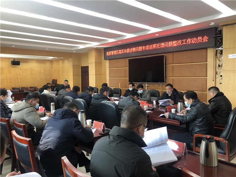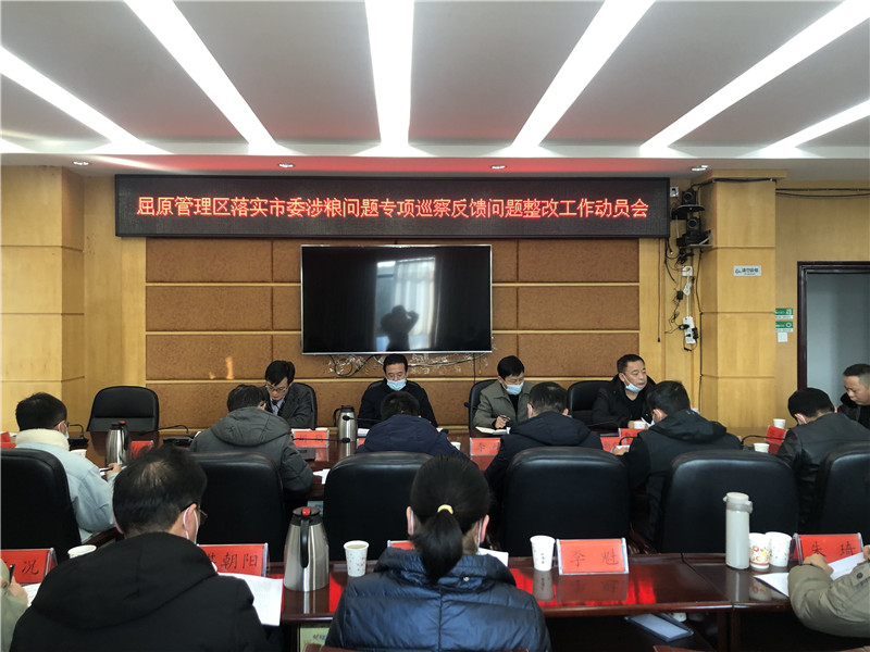 会上,胡鹤传达学习贯彻习近平总书记关于粮食安全和整治粮食购销领域系统性腐败问题重要指示批示精神;传达市委涉粮问题专项巡察反馈意见;安排部署屈原管理区落实市委涉粮问题专项巡察整改工作。