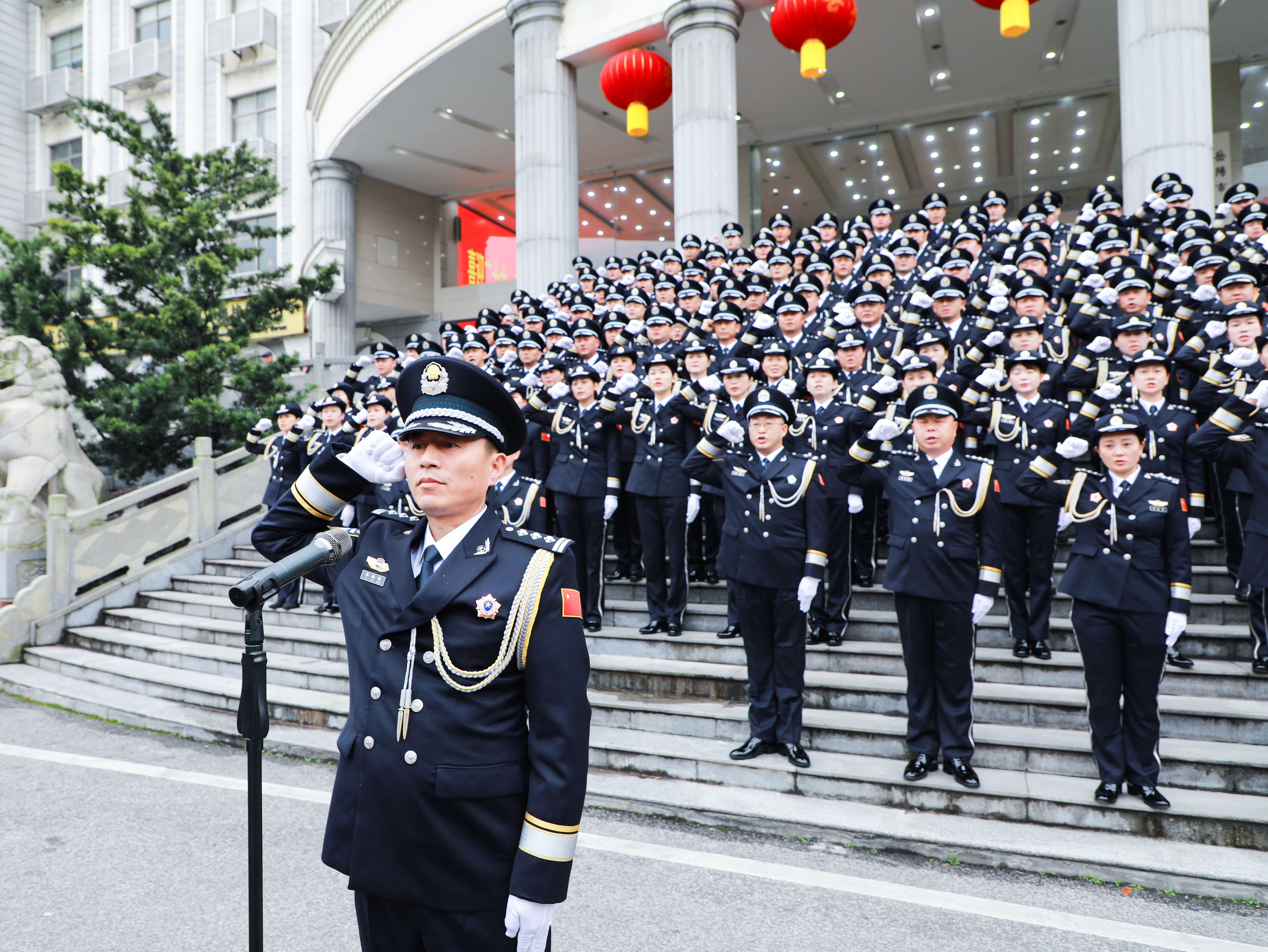 上午9时,升警旗仪式正式拉开序幕。伴随着雄壮的《中国人民警察警歌》,在护旗手利落有力的抛掷下,鲜艳的中国人民警察警旗在分局前坪冉冉升起。升旗仪式结束后,分局党委副书记、副局长李岳星带领全体民警重温了入警誓词。余昕代表分局党委向一年来坚守岗位、忠诚履职的全体民辅警、离退休民警及家属们,致以节日的问候和美好的祝愿。他表示,一年来,分局全体民辅警精诚团结、锐意进取,共同打赢了安保维稳、打击犯罪、抗击疫情、打防电诈、护校安园、服务民生、政治建警七大攻坚战。余昕要求,新的一年,分局要传承建党精神,坚守如磐初心,高擎平安旗帜,踔厉奋发,笃行不怠,以不负历史、不负时代、不负人民的使命感,坚决担负起新时代中国特色社会主义事业建设者、捍卫者的重大政治责任。