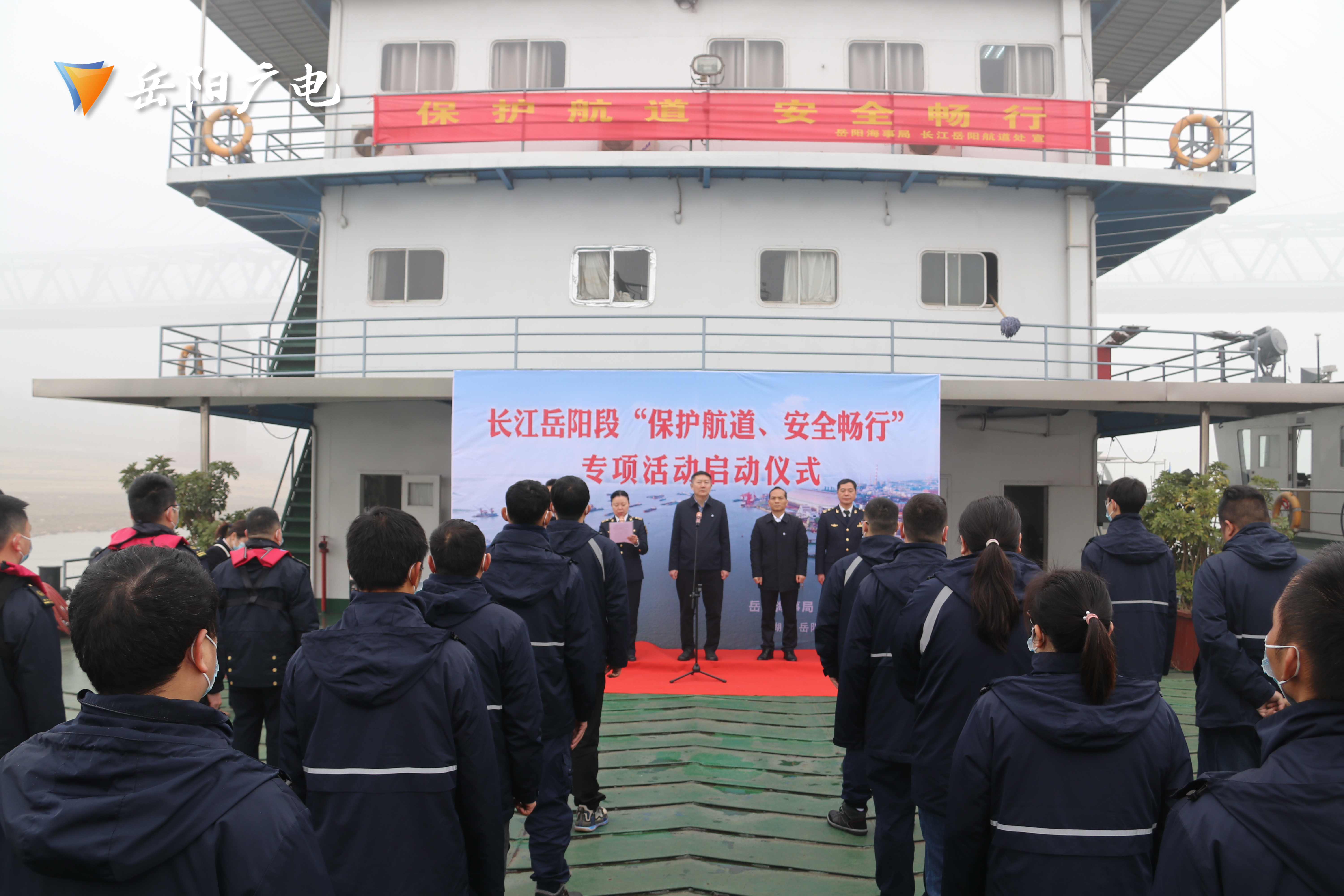 今天上午9时许,由岳阳海事局、长江岳阳航道处联合开展的“保护航道、安全畅行”大型水上联合行动在长江中游岳阳段正式拉开帷幕,长江航道局航标处、长江岳阳航道处和岳阳海事局相关负责人参加启动仪式。