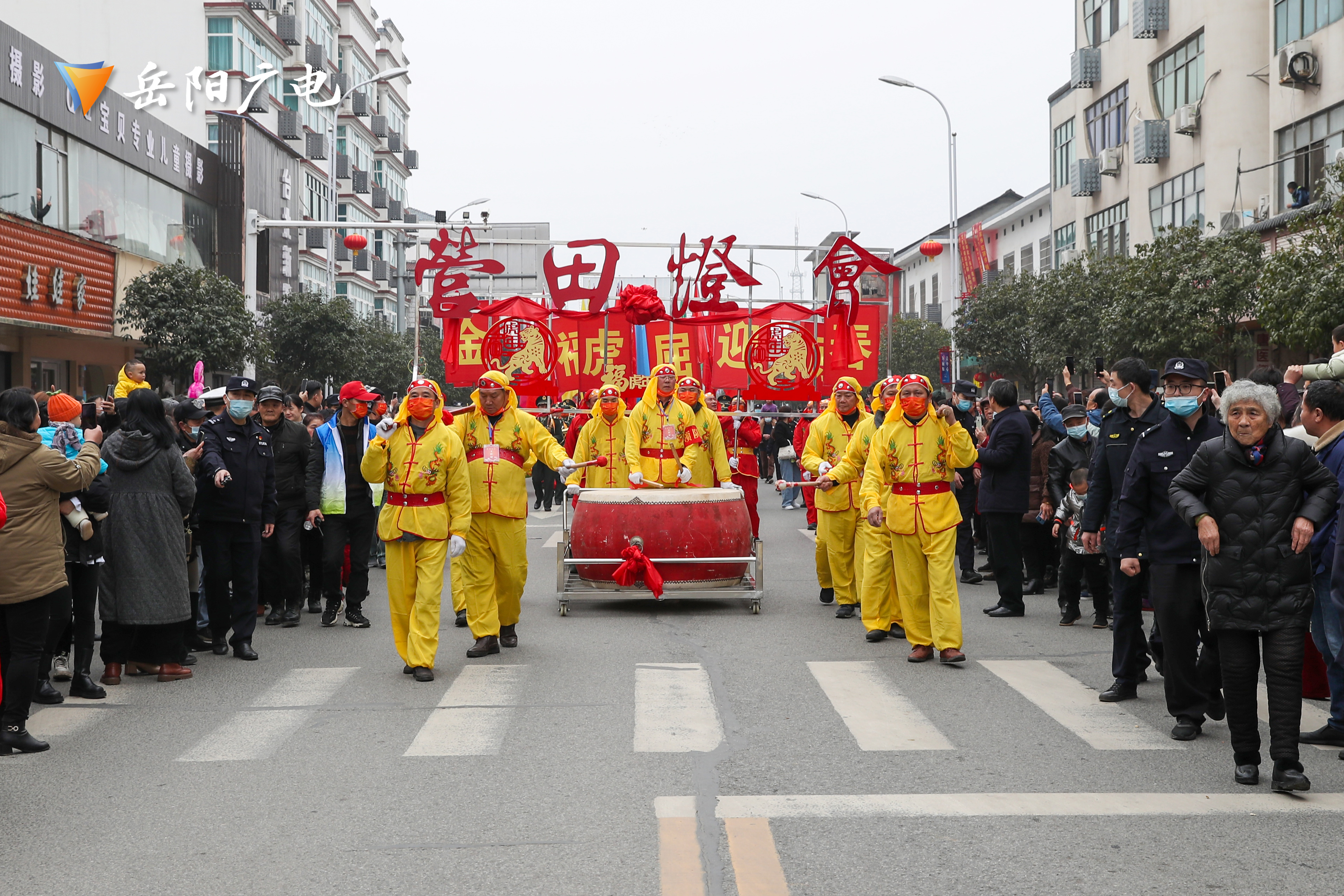 下午2:30,闹元宵灯会从区机关出发,沿屈原管理区营田镇主街道游行表演,最后在天问德科广场进行民俗传统节目表演。游行队伍走在最前面是由我区民间老艺人组成的"当头鼓队",其娴熟激越的鼓点催人奋进。接下来是营田灯会四个熠熠发光大字,显得喜庆而庄重,八个主题排灯"金虎迎春,幸福屈原",表达了屈原人民上下同心,打造“人民满意的生活福地”目标的美好愿景。