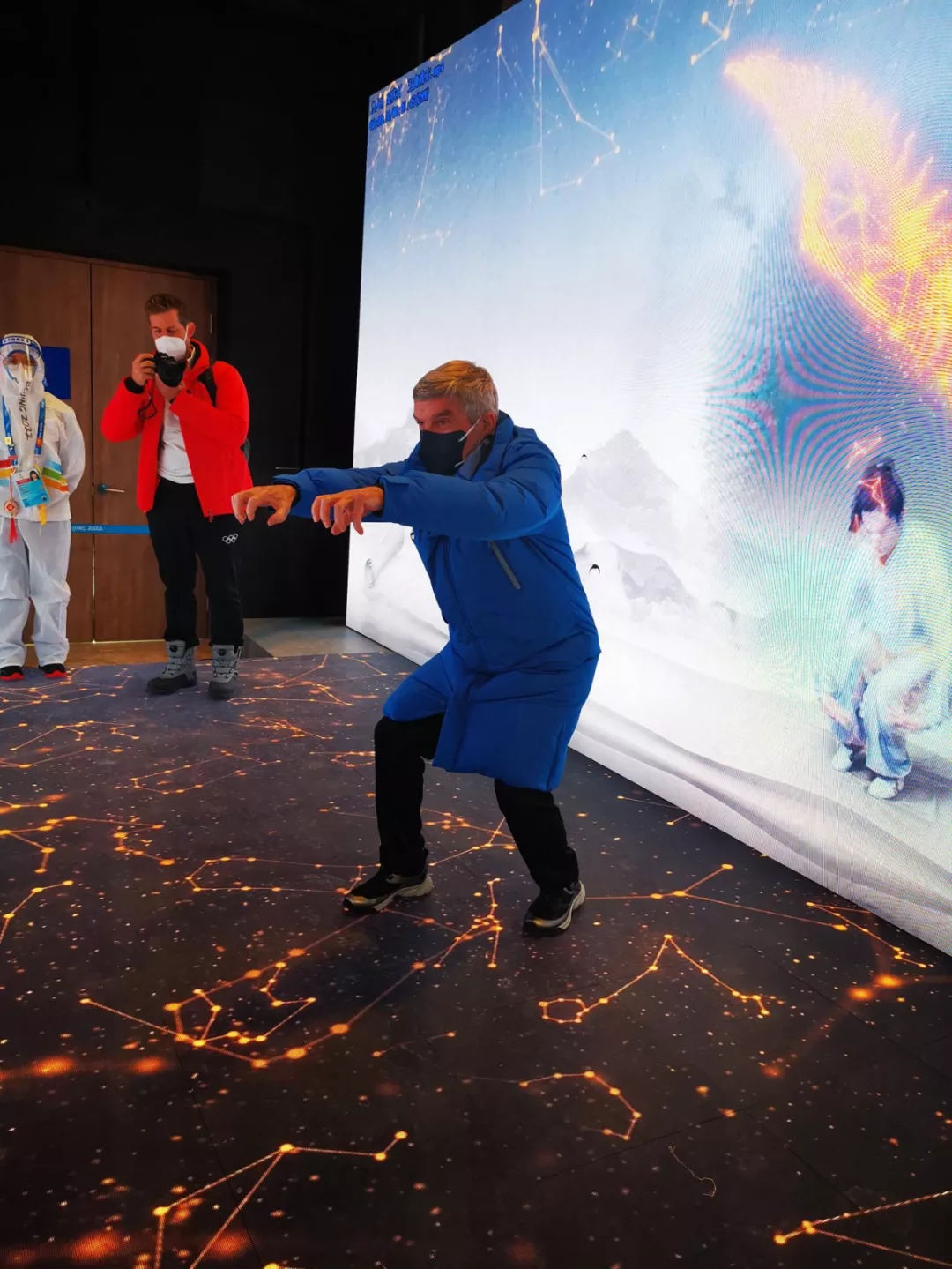 当中华文化与奥运文化和合共生,就有了世间美美与共的相遇。这里是巴赫主席曾到访的冬奥村“10秒”中医药体验馆。一方不到80平米的小天地不仅展示中医“大国粹”,也成为了展现中国文化的重要窗口。在“天人合一”沉浸式体验区,屏幕呈现的是运动员们最喜欢的单元——“五禽戏”功夫打卡。在了解五禽戏的中医故事和动作要领后,巴赫兴致勃勃地跟随屏幕完成了一套虎戏的表演,虎虎生威,尽显中医魅力。而后巴赫体验了中医数字化百变屏——“望而知之屏”。他亲自点选了富含中医药知识、故事和文化的短视频,并体验了充满中医特色的《极简穴位健身操》。巴赫还来到了体验馆又一处网红打卡地——心愿球墙,在许愿球上留下祝福:“Thank you very much for your best hospitality and warm smile”(谢谢你们的热情好客和温暖笑容)。