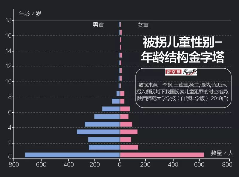 0岁是拐卖巅峰期,此时男童女童数量接近。