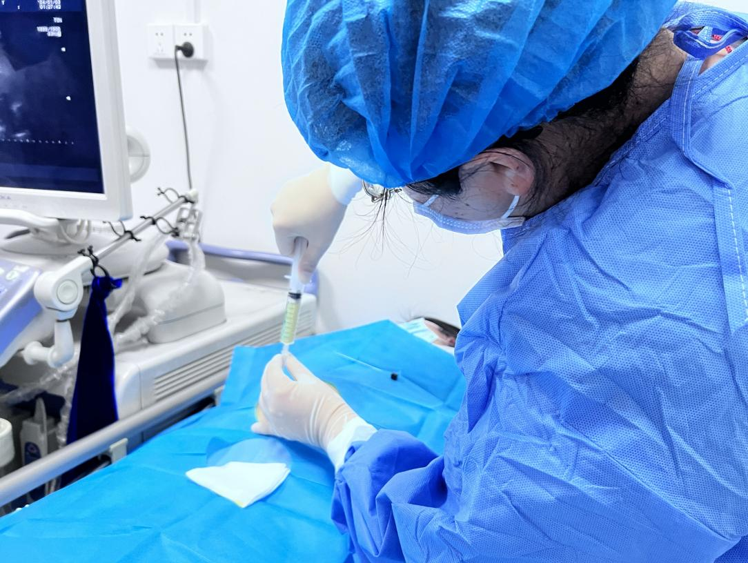 孕妇张女士因“二代试管、双胎妊娠,唐氏筛查21三体临界风险”需行羊水穿刺产前诊断,在市妇幼保健院副院长沈小卜、医学遗传科主任邬洪梁、产科副主任康昭海、超声医学科副主任张青的指导下,陈丽娅副主任医师在超声引导下为该孕妇进行了双胎妊娠羊水穿刺术,整个过程和孕妇沟通良好,操作顺利,成功获取了胎儿羊水。