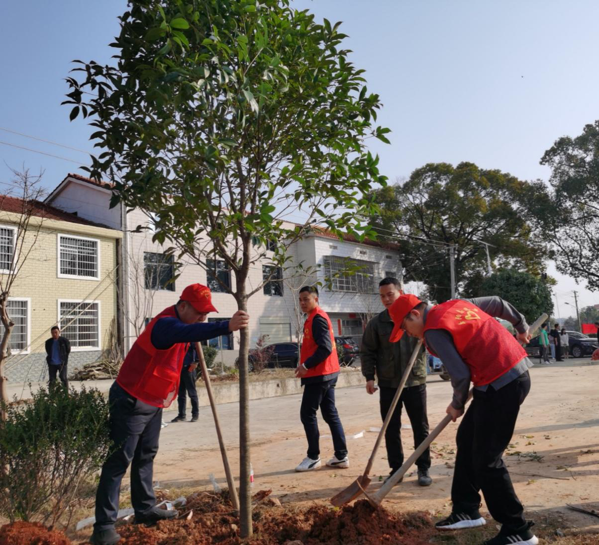早上八点,杨林街镇党员干部和志愿者们陆续来到花果园村桥里桥屋场,大家几人一组,松土、平土、挖坑、放苗、填土、踩实,有的挥舞着铁锹,有的搬运着树苗,大家密切配合、团结协作,一派热火朝天、紧张有序的劳动景象。现场种植树木有樟树、紫薇、红继木、四季桂、茶梅等。
