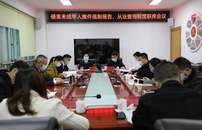 为切实加强对未成年人的综合司法保护,及时有效预防和惩治侵害未成年人的违法犯罪,3月17日,由岳阳楼区委政法委牵头,区检察院联合区监察委、区教育局、岳阳楼公安分局、区民政局、区司法局、区卫健局、团区委、区妇联等相关职能部门召开侵害未成年人案件强制报告制度和从业查询制度联席会议。