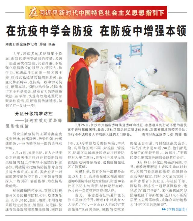 去年,湖南多地多层级集中换届。面对这波来势汹汹的疫情,各级干部迅速找准定位,沉着冷静,不断强化疫情防控的领导力、管控力、执行力。充满战斗力的新一届各级干部,针对此轮疫情防控的新形势、新变化和新特点,在抗疫一线中学习抗疫、增强本领,不断总结经验,创造出了不少科学高效、精准有力的防疫新做法、新举措,快速有效地处置局部聚集性疫情、阻断疫情传播链条,做到了打一仗进一步!
