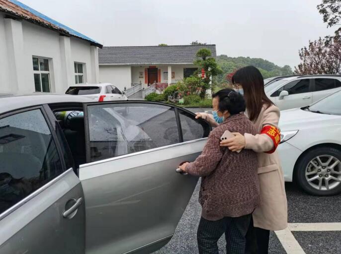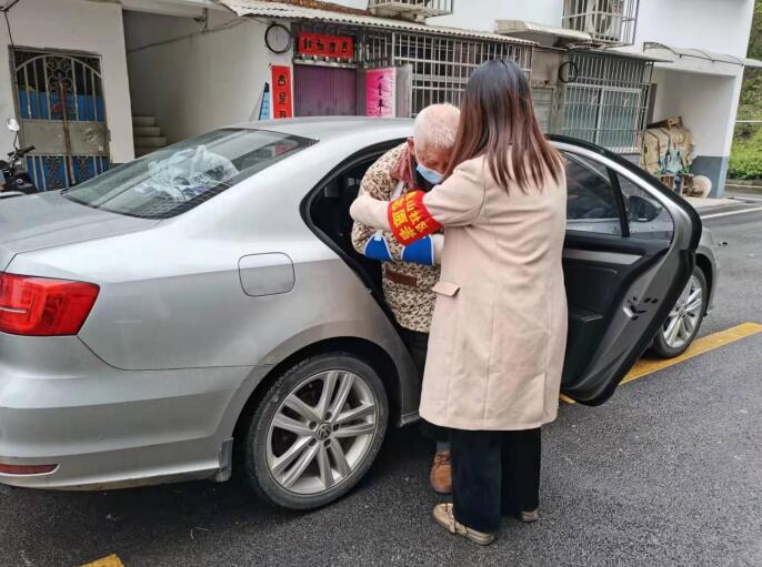 在疫苗接种点,党员志愿者也全程跟踪服务,协助老人进行信息扫码登记、健康询问。让老人接种安心、舒心、暖心,在老人完成接种后,将老人送回家,做好接种一站式服务。