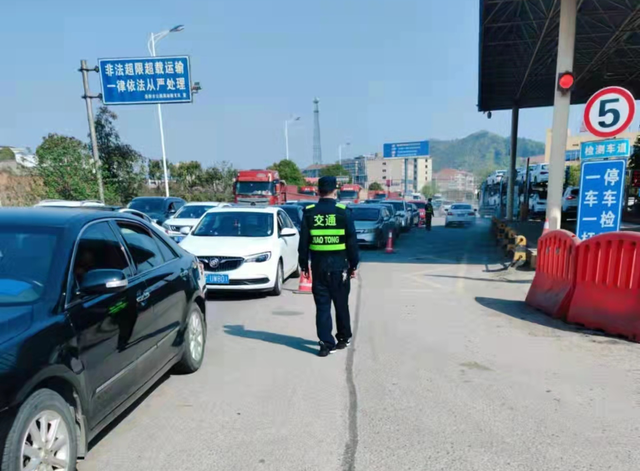 4月3日,清明假期第一天,G107全线车辆骤增。在G107K1579+700m新开塘超限检测站三叉路口,由于出行车辆太多,造成交通拥堵,途经的车辆排起了长龙。岳阳市交通运输综合行政执法支队新开塘超限检测站迅速启动节假日应急预案,以加强路面管控为主、车辆检测为辅,要求执法人员配合路面交警认真当好“引导员”、“疏导员”。