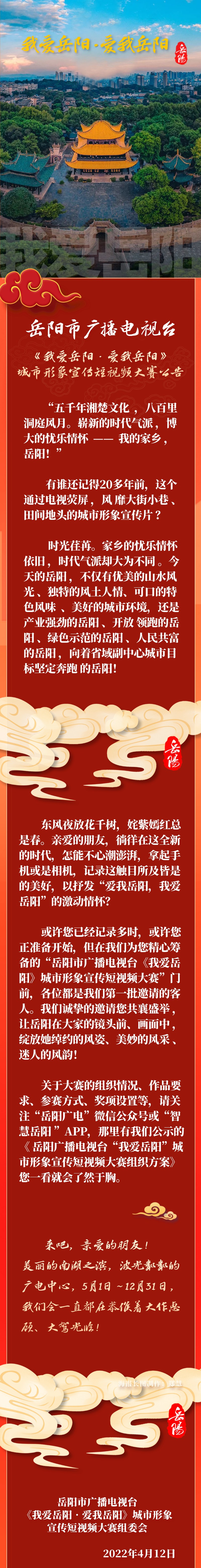 岳阳市广播电视台《我爱岳阳•爱我岳阳》城市形象宣传短视频大赛公告