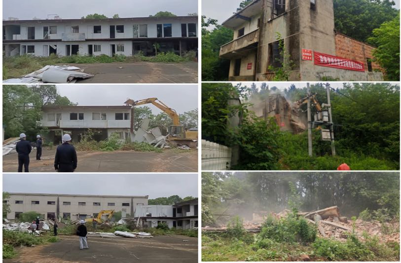 5月13日,岳阳县荣家湾镇人民政府联合县住建局、县自然资源局、县应急管理局等相关部门对辖区内5处存在安全隐患的房屋、公棚、厂房、棚亭进行依法拆除,共拆除违建面积7320平方米。岳阳县副县长胡海平进行现场指挥。
