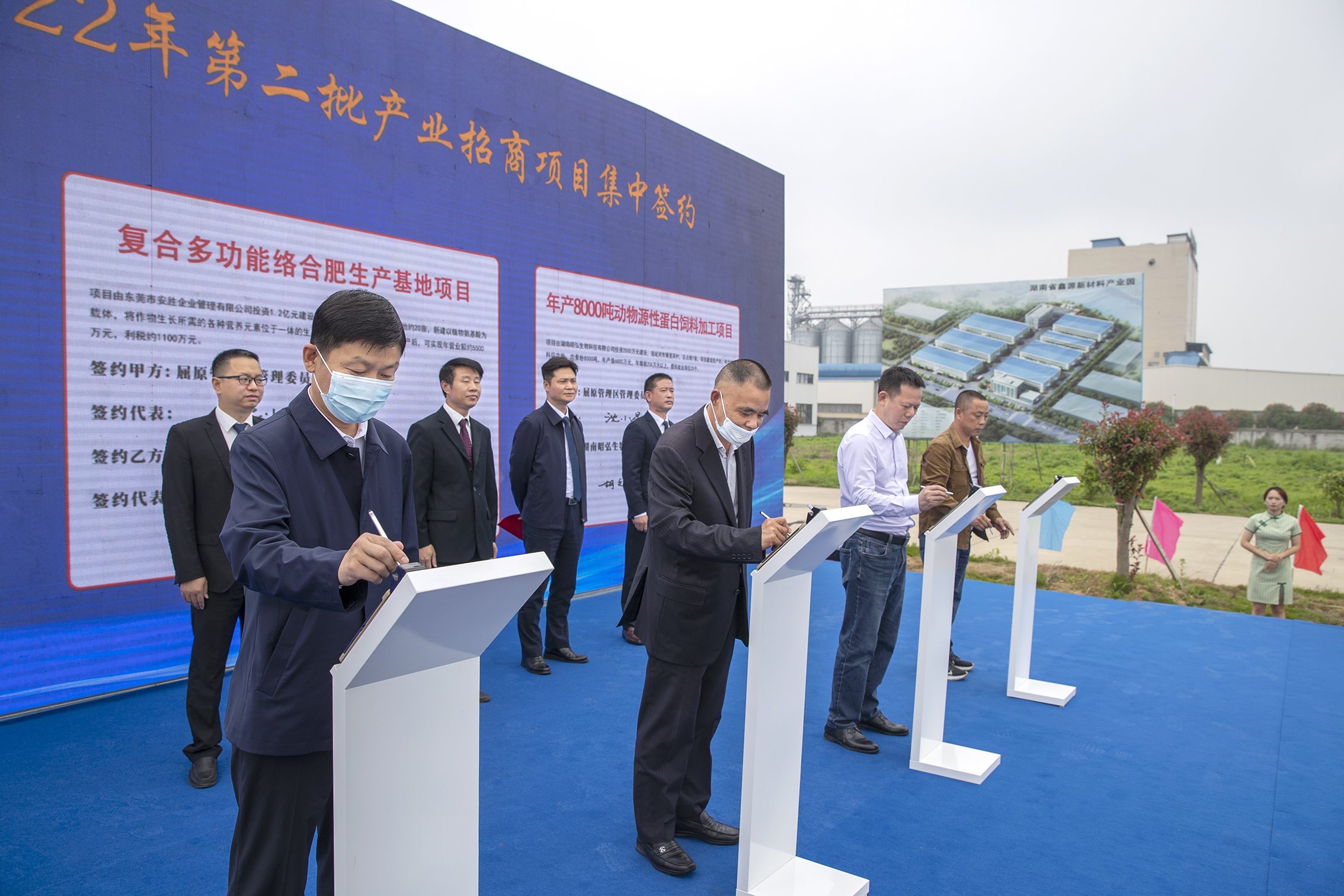 仪式由区党委委员、办公室主任彭典主持。区人大政协联络工委副主任徐扩勇介绍了集中签约项目和集中开工项目基本情况。区党委委员、区管委常务副主任沈小星代表屈原分别与湖南越大能源有限公司、东莞市安胜企业管理有限公司、湖南昭弘生物科技有限公司签署项目投资协议。