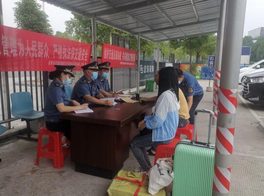 “师傅,没有取得道路客运经营许可的车辆,进行客运经营行为是非法的,一旦出现交通安全事故,保险公司也将根据相关法律规定拒赔!所以为了您的人身安全,请务必选择乘坐正规班线客运车”。结合“四亮”主题活动及“打非治违”专项整治“猎鹰”行动,5月27日,岳阳市交通运输综合行政执法支队直属二大队党支部组织党员骨干、执法人员在岳阳东汽车站开展普法宣传活动,向群众宣讲交通运输领域相关法律法规。