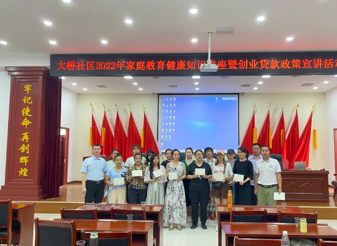 6月8日,2022年家庭教育健康知识讲座暨创业担保贷款政策解读走进岳阳经开区大桥社区。国家认证高级家庭教育指导师、青少年英语偏科厌学心理疗煎师身份、岳阳职院英语教师、岳阳职院经开区社区学院家庭教育讲师童艳玲以《积极心态 美好家庭》为题,开展家庭教育健康知识公益讲座。岳阳市就业(人才)服务中心创业贷款担保中心副主任杨震给大家进行了创业担保贷款政策解读。
