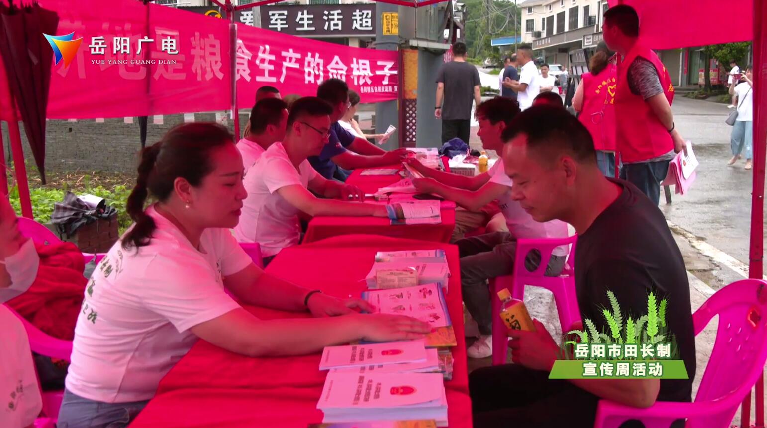 岳阳广电全媒体讯(记者:向雅 古雅)6月24日,是田长制宣传活动开展的第四天,天空中淅淅沥沥下起了小雨,却丝毫不减工作人员宣传的热情。平江县、华容县、湘阴县和岳阳楼区、岳阳经济技术开发区,三县两区联动,同步展开。三县经济发展活跃,土地资源抢手,两区在建设开发前沿,土地资源金贵;五地始终秉承“寸土寸金,节约为民”的理念,努力做好耕地保护始于心,节约用地践于行。