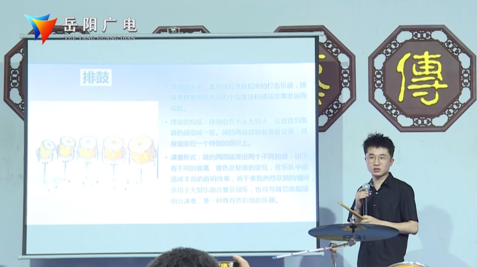 石哲文则为大家讲述了鼓的起源,并科普了鼓的知识,让大家对鼓这一打击乐器有了更深的认识,为了方便观众更好的了解打击乐,石哲文现场习鼓,在不断的掌声中,现场气氛一度达到了高潮。