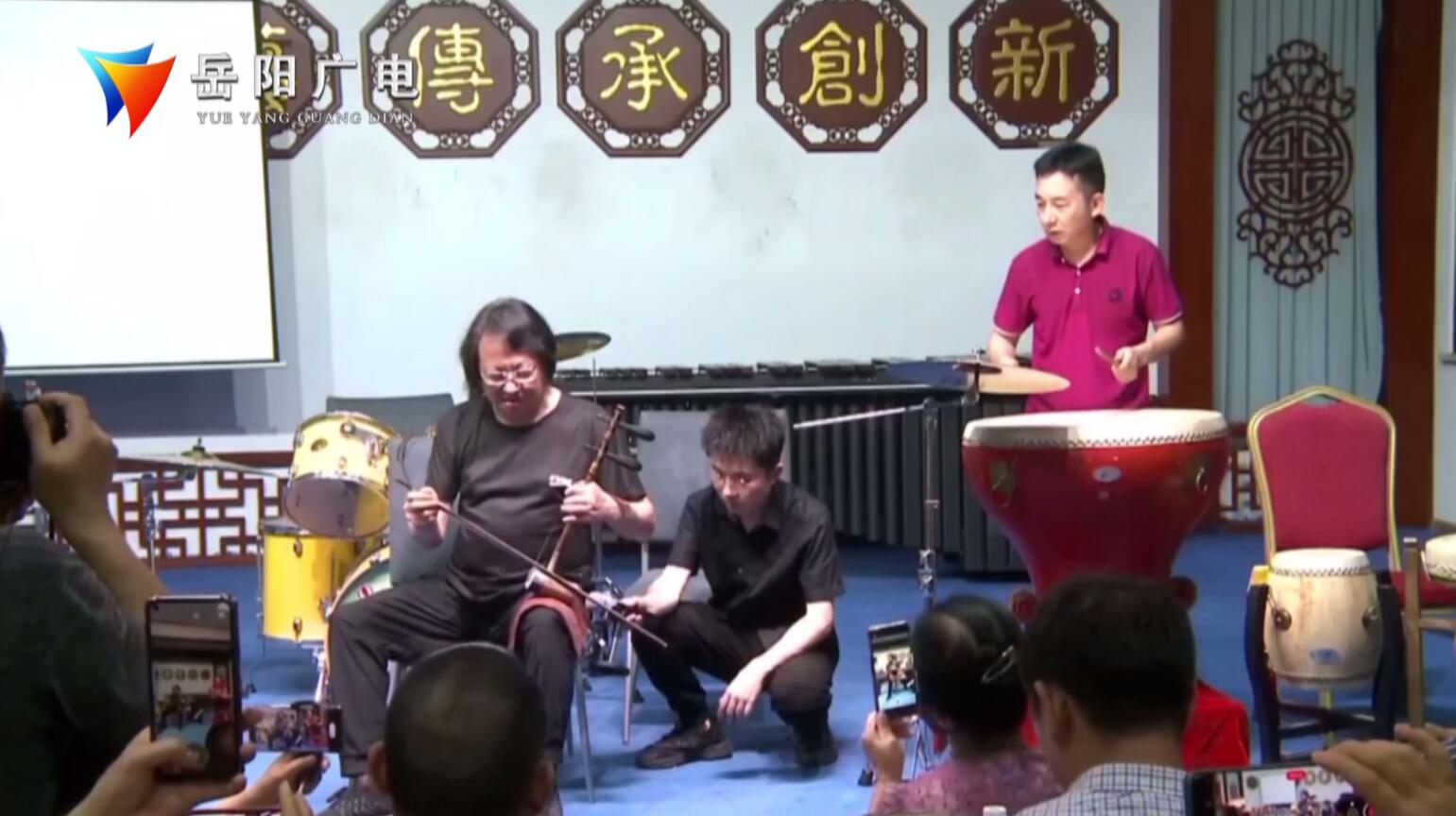 岳阳广电全媒体讯(记者:谢玢如)6月24日,《三嘴策岳阳》在巴陵戏传承研究院举办了了以“鼓舞洞庭·鼓舞三湘”为主题的讲座。“鼓王”父子石伟、石哲文应邀登台分享他们与鼓的故事,讲解普及鼓的相关知识,现场观众认真听,用心记,感受鼓文化。