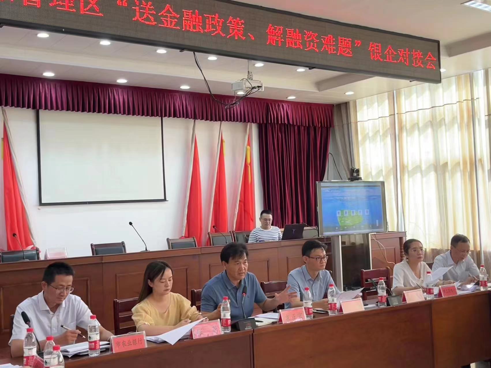 为解决屈原管理区大中小企业、规模服务业、专业合作社、建筑业等受疫情影响带来的资金困难。岳阳市驻屈原千名干部联企工作组和屈原管理区管委联合举办 “送金融政策、解融资难题”银企对接会。邀请岳阳市、汨罗市和屈原管理区12家金融机构与屈原本地20家企业直接面对面交流,精准解决企业融资需求,助力全区各类市场主体纾困解难。