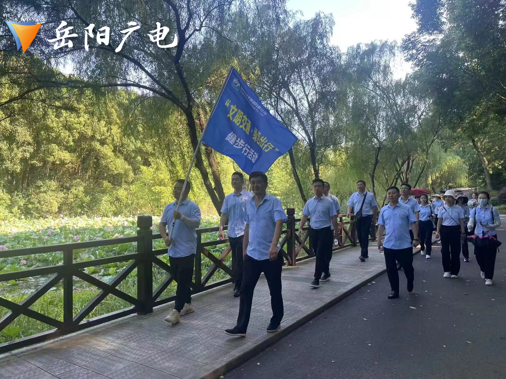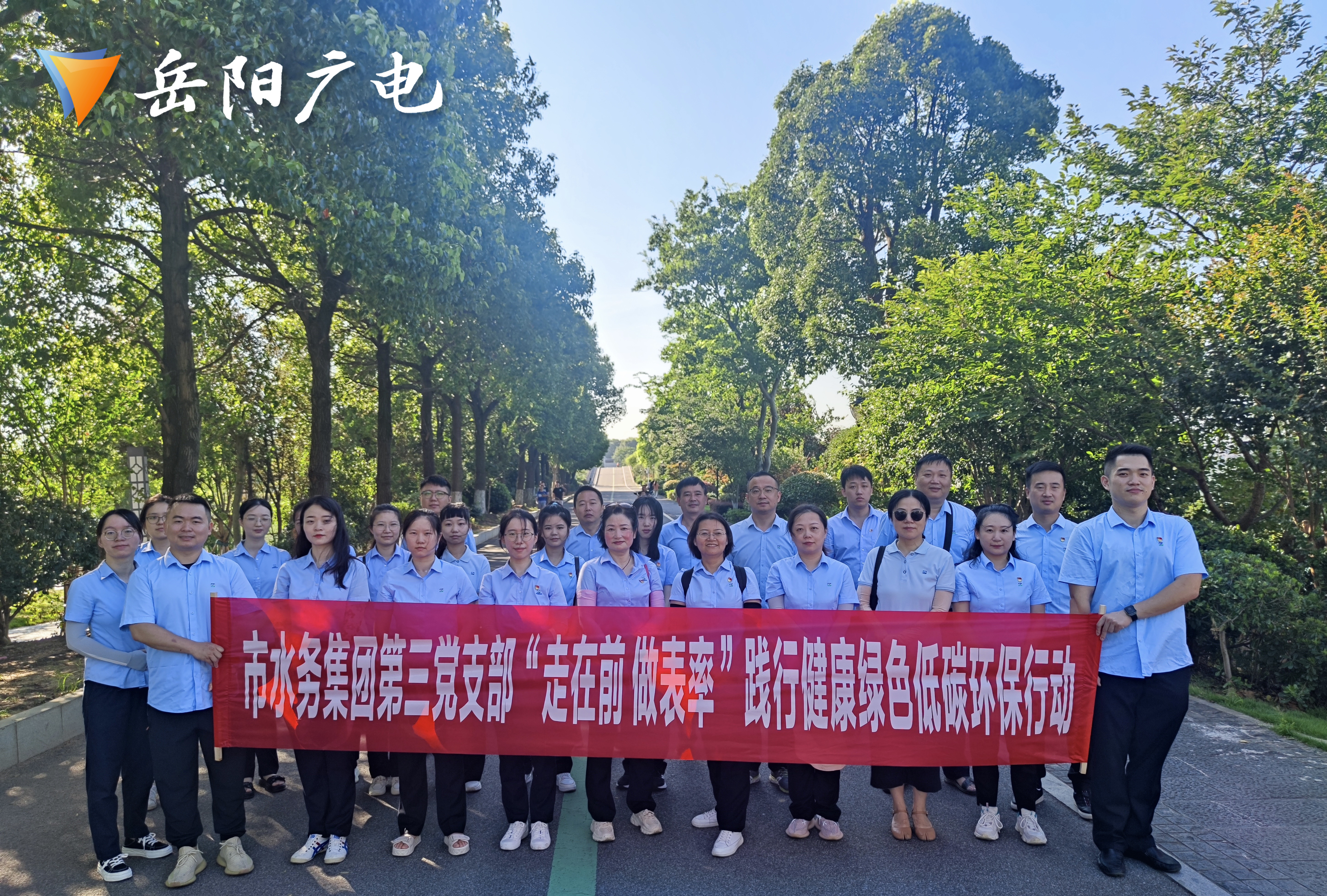 盛夏的南湖公园,水波粼粼,绿树葱郁。7月12日清晨,岳阳市水务集团第三党支部组织20余名党员及青年理论学习小组成员开展“文明交通 绿色出行”健步行活动。