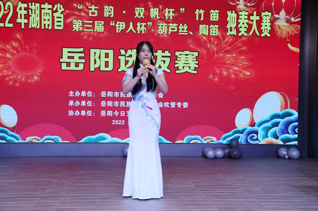 岳阳广电全媒体讯(记者 宁平 周薇 摄像 张湘玲)8月4日,2022湖南省第四届古韵·双帆杯”竹笛、第三届“伊人杯”葫芦丝、陶笛独奏大赛岳阳选拔赛在今日艺术教育培训学校举行,来自全市各县市区场的143名选手同台竞技,用流畅娴熟的演奏,向现场评委和观众展示了中国民族吹管乐器的魅力。最终,70名选手脱颖而出,将参加8月中旬长沙举行的复赛和决赛。