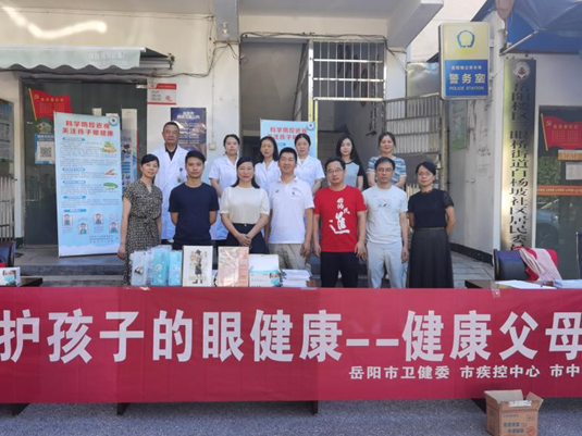 2022年8月5日,由岳阳市卫生卫健委组织,邀请岳阳市教体局、市疾控中心、市中心医院及岳阳民进医卫支部多部门(组织)共同参与,根据岳阳市近视防控干预计划,主要围绕“共同呵护孩子的眼健康--健康父母行”主题,开展专家进社区爱眼护眼视力保护宣传教育活动。市卫健委疾控科科长王芳、市教体局安全科科长李嘉谊、市疾控中心健康教育科科长韩智、市中心医院眼科主任杨阳、岳阳民进医卫支部主委黄平等参加了本次活动。