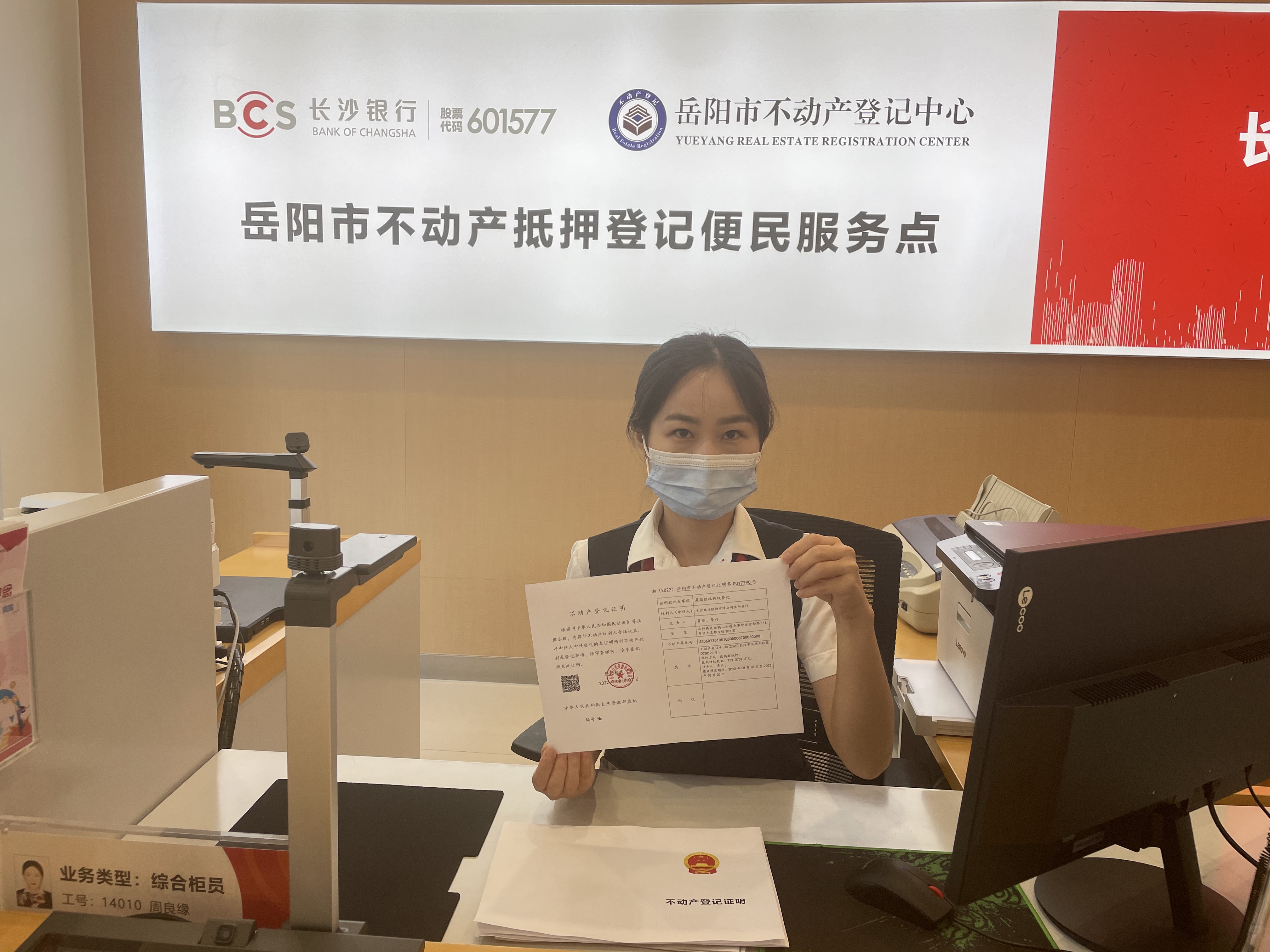 客户李丹作为不动产登记便民服务点设立后的首位服务对象,标志着长沙银行岳阳分行首个“互联网+不动产抵押登记”业务正式上线运行,将抵押登记服务延伸至指定银行窗口,由“跑多趟”变成了“一趟办”,由“排队等”变成了“线上办”,实现了客户在长沙银行和不动产登记部门办理不动产抵押贷款“零往返”。